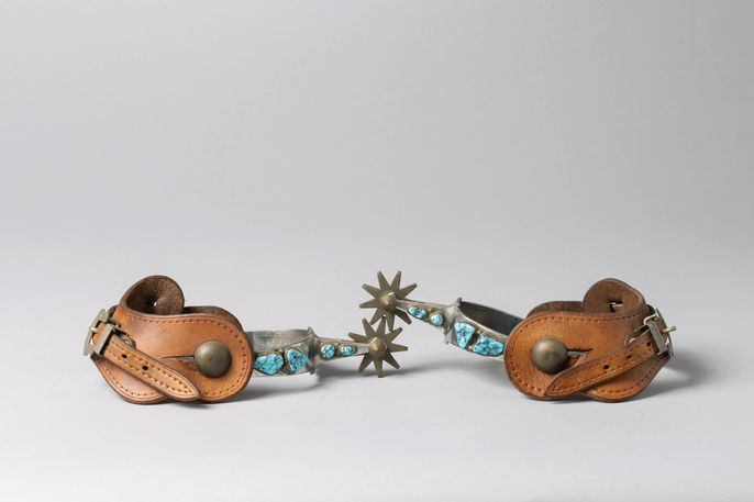 Pair of Navajo (Diné) Nickel-Silver Spurs with Turquoise Inlay