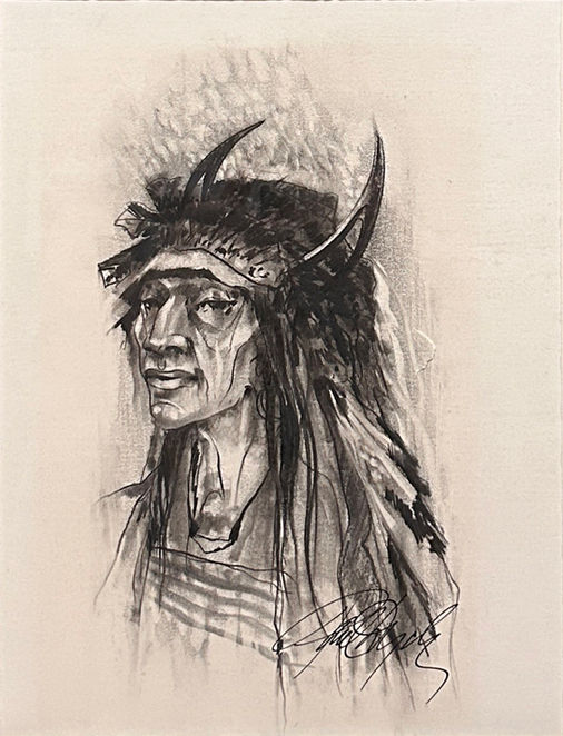 Paul Dyck "Gros Ventre Man"; 11.5" x 8.5" charcoal; Signed lower right; On verso- titled, signed and dated 1972
