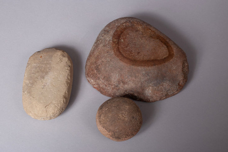 Stone Group Including a Well Used Stone for Grinding Ocher and a Polishing Stone, Ca 1000 - 1500 AD