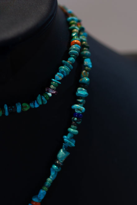 Multi-stone strand necklace with turquoise pendant (1 1/4")