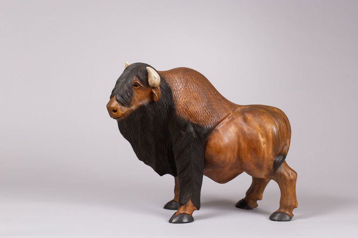 Vintage American Bison Hand-Carved from a single piece of Solid Wood
