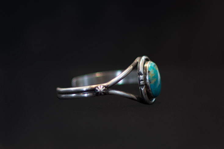 Sterling silver bracelet with a single turquoise stone (approximately 3/4")